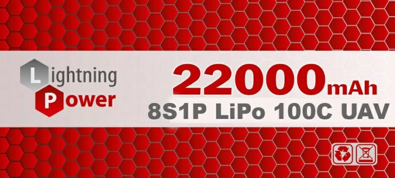 - аккумуляторная батарея Lightning Power LiPo 22 000 mAh 29.6V (8s), 100C, XT90, Soft case