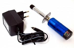 Накал свечи с цанговым зажимом и индикатором работоспособности свечи, аккумулятором NI-MH 2400mAh и зарядным устройством работающим от сети 220V.