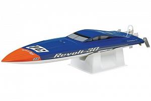 Скоростная радиоуправляемая модель катера Revolt 30 FE MONO в готовом состоянии, Вам остаётся приобрести только аккумуляторы. Модель выполнена из стеклопластика, благодаря чему корпус имеет большую жёсткость, прочность и небольшой вес. На днище имеются два продольных редана, служащих для сокращения площади смоченной поверхности за счёт отрыва потока от днища катера и, соответсвенно, уменьшения сопротивления и увеличения скорости. Для настройки положения корпуса в воде при глиссировании на модели имеются транцевые плиты с удобной регулировкой угла установки винтами.