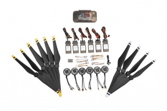 DJI E800 - это новейшая система, созданная специально для мультикоптеров весом от 3 до 5 кг. В комплект входят улучшенные двигатели 3510 Kv350, пропеллеры 13 x 4.5, регуляторы скорости 620S 20A 22.2V, коннектор для регуляторов, навигационные огни и набор инструментов и крепежа.