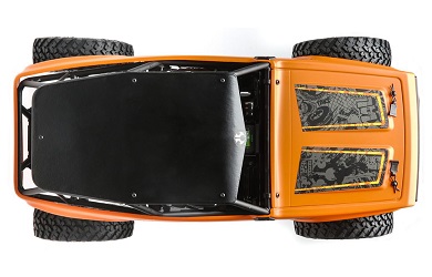 В передней части корпуса из поликарбоната установлена литая пластиковая решетка, радиатор, две большие светодиодные фары и функциональный капот. Под капотом вы найдете копию 8-цилиндровового двигателя – это корпус, который защищает приемник Spektrum SRX200 от воды, пыли и мусора.