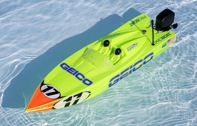 Радиоуправляемый катер ProBoat Miss GEICO 17" Power Boat Racer Deep-V RTR (жёлтый)