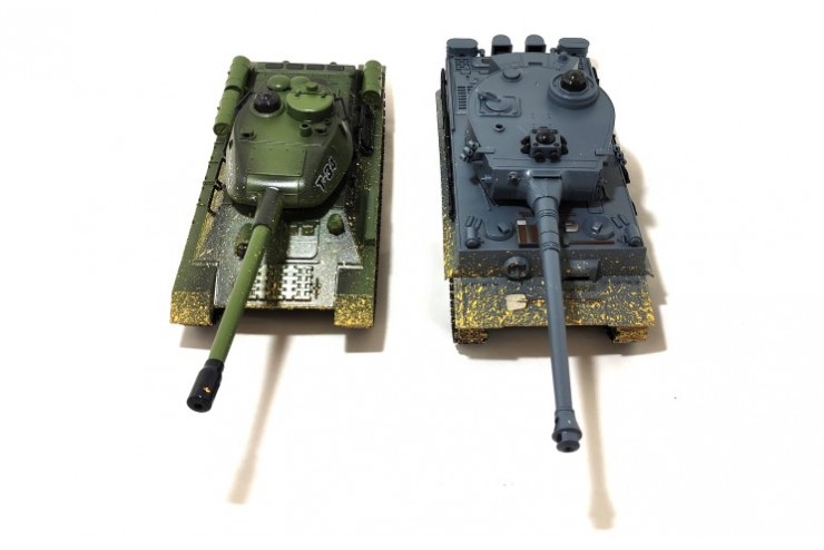 | Комплектация | 2 танка русский T-34 и немецкий Tiger. 2 аккумулятора 4.8v 700mAh,. 2 зарядных устройства. 2 пульта. Инструкция. |