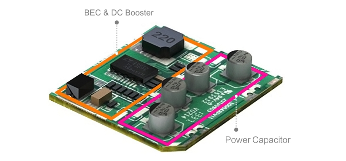 - Встроенный линейный BEC выдаёт напряжение 6V и ток до 3A.
