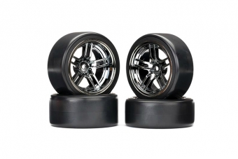 Tires and wheels, assembled, glued (split-spoke black wheels, 1.9" Drift tires) (front and rear)