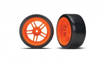 Tires and wheels, assembled, glued (split-spoke orange wheels, 1.9" Drift tires) (rear)