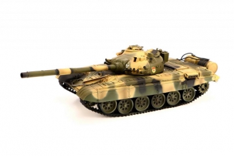 Радиоуправляемая модель основного боевого танка СССР Т-72. Масштаб модели 1/24. Модель детально копирует свой прототип. Управление осуществляется каждой гусеницей отдельно, поворотом башни и подъемом пушки. Танк оборудован ИК-пушкой, позволяющей вести танковое сражение. При этом танк противника фиксирует попадание и реагирует на него имитацией различных повреждений, а после нескольких попаданий перестает функционировать.